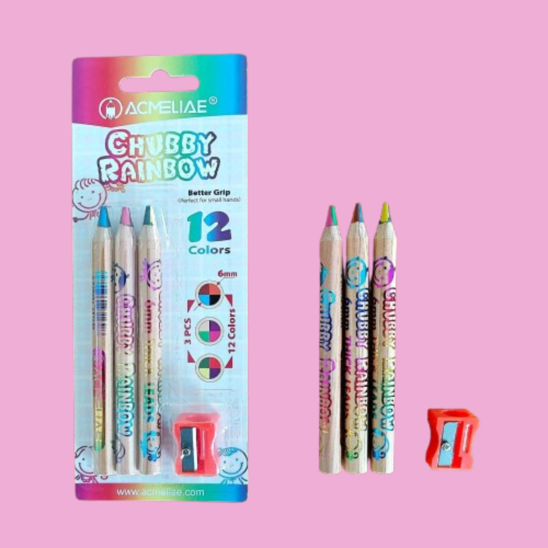 Acmeliae (43069) Chubby Rainbow Pencils (4pcs Set) 12 Colors
