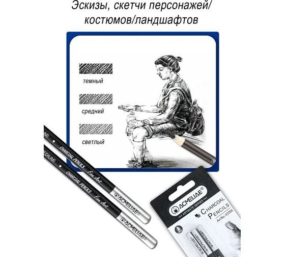 Acmeliae (43138) Charcoal Pencils Set (12pcs) Paper Box (MEDIUM)