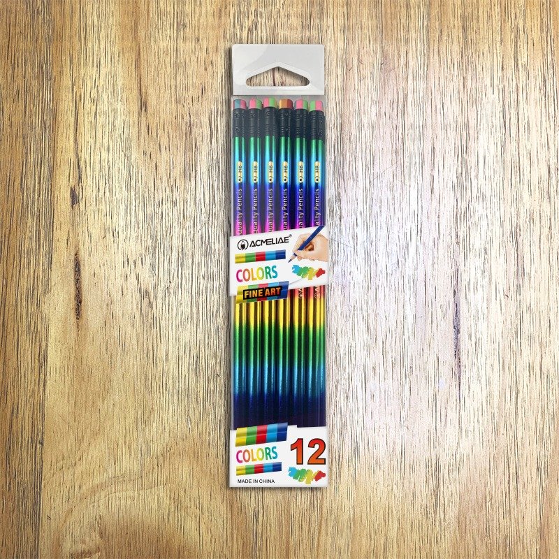 Pencil top: Black ferrule with rainbow eraser