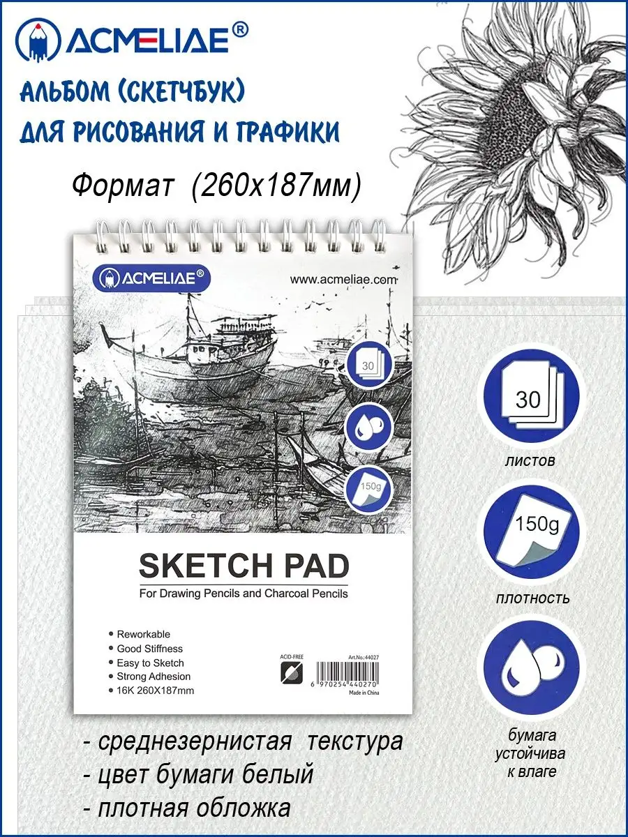 Acmeliae (44027) Sketch Pad for Drawing Pencils and Charcoal Pencils (1pc)